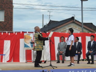 2025.9.20 1学年 2学年 3学年 【9月20日】かかし祭にて 9月20日10時、中田かかし祭が始まりました。 中田中学生もかかしの出品やポスター制作に大活躍です。 開会式と感謝状の贈呈式の様子です。 中学生がかかし祭をより盛り上げるために、着ぐるみを着て大人気の大活躍でした! みんなで地域を盛り上げようとする姿を誇らしく思います。