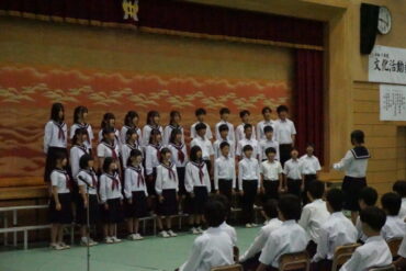 全校合唱が実現できるのも、ひな壇を貸していただいた写真屋さんのおかげです。