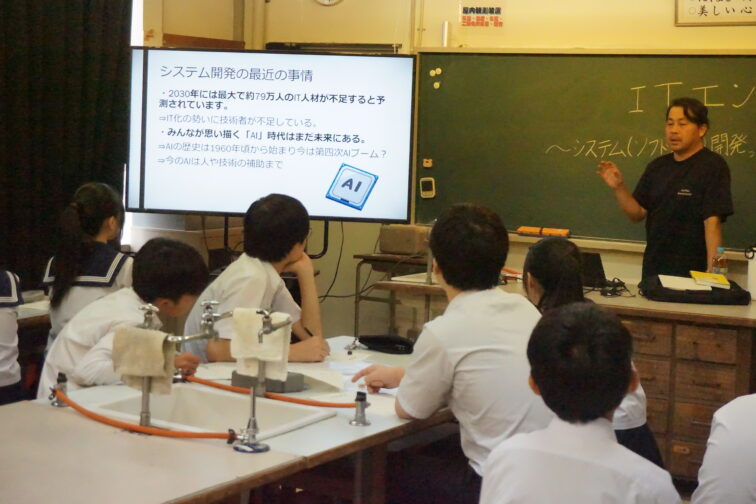 2025.10.21 1学年 2学年 3学年 【10/18】職業講座の様子 今年もPTA文化教養委員会の企画で、職業講座を6つ開設していただきました。 講師の6名の保護者のお話を聞いて、将来選択に大きく役に立ったはずです。講師の保護者の方はもちろん、実施まで準備してくださったPTAの役員の方に感謝しています。 1 ホテルトレーニングマネージャー 山崎さん 2 建築士 髙桑さん 3 FSエンジニア 堀田さん 4 美容師 佐々木さん 5 ITエンジニア 宮前さん 6 医師 川﨑さん