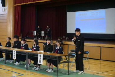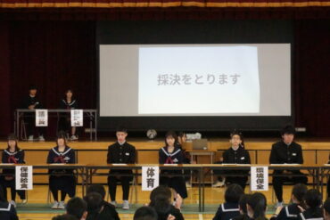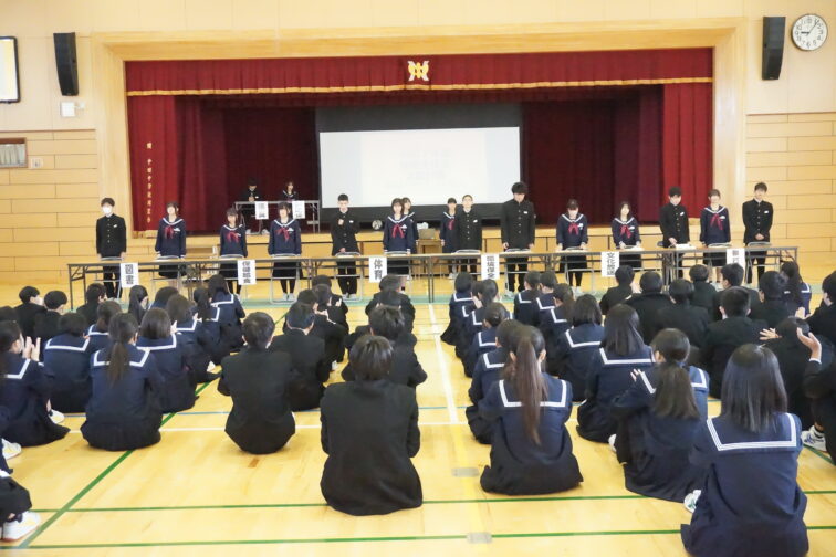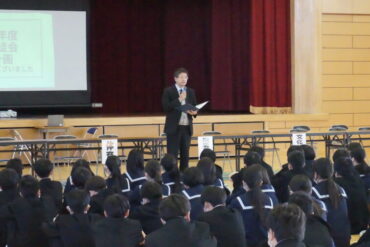 2025.11.10 1学年 2学年 3学年 【11/7】1限 生徒総会の様子 2年生が中心となった後期生徒会の正式なスタートである生徒総会が1限に行われました。 後期生徒会長 郷田くんの生徒会執行部の活動内容の説明です。 ステージ上の議長・副議長もハキハキと頑張っていました。 活動案の承認を得て全員起立しました。 最後に校長先生からの言葉です。 生徒全員の頭が上がり、目で話を聞いている姿、これを大切にしていきたいものです。