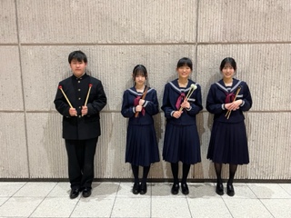 2026.1.13 1学年 2学年 【1/10】吹奏楽部 アンサンブルコンテスト地区大会に出場 本校吹奏楽部は3つのチームに分かれて参加しました。打楽器4重奏は66チーム中最後の演奏順のため、部員全員で打楽器の準備に取りかかりました。 出番が終わって撮影です。 木管5重奏 銀賞 金管7重奏 銀賞 打楽器 銅賞 3つのチームそれぞれ全力を尽くしたいい笑顔です。1年生はこの経験を次回に活かしていけたらいいです。